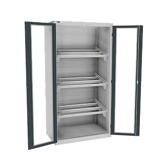 Укомплектован дверьми с окнами, 3 комплектами кронштейнов под салазки и 9 салазками под держатели инструмента. Держатели инструмента приобретаются отдельно.