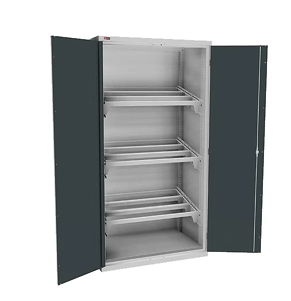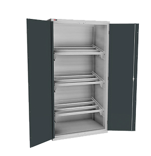 Укомплектован дверьми глухими, 3 комплектами кронштейнов под салазки и 9 салазками под держатели инструмента. Держатели инструмента приобретаются отдельно.