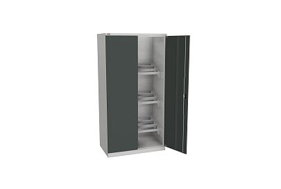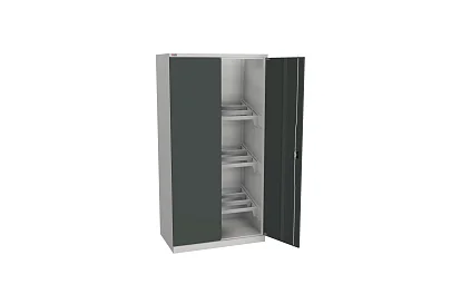 Используется для хранения инструмента. Укомплектован 3 ярусами кронштейнов с салазками под углом 15 градусов для держателей инструмента. Покрытие - глянец, стойкая порошковая краска на эпоксидной основе. Цвет дверей, фланцев ящиков и платформ RAL 7016 (антрацитово-серый). Цвет корпуса, корпуса ящиков, аксессуаров RAL 7038 (агатовый серый).