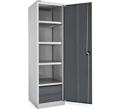 Укомплектован 4 оцинкованными полками, 2 выдвижными ящиками.