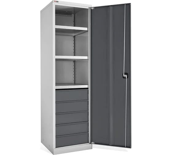 Укомплектован 3 оцинкованными полками, 5 выдвижными ящиками.