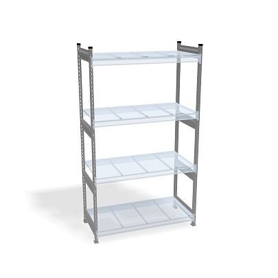 Рама для стеллажа металлического СТ-023. Стеллаж металлический используется для хранения различных грузов на складах и производствах. Сложный профиль стойки, горизонтальные стяжки и тройные зацепы обеспечивают жесткость конструкции.