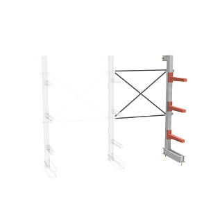 Мощный и удобный стеллаж для хранения длинномерных грузов — балок, труб, профилей, элементов конструкций. Каждая пара консолей выдерживает нагрузку до 1400 кг.