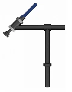 Струбцина быстроприжимная под 45°. Предназначена для быстрой и точной фиксации и прижима закрепляемых деталей. Наличие фиксаторов на горизонтальном и вертикальном стержневых кронштейнах позволяет производить регулировку струбцины по высоте и вылету. Быстрее в работе, чем винтовые зажимы. Имеет съемную прижимную пяту. Поворотный на 360° рычаг обеспечивает доступ к закрепляемым деталям со всех сторон. Рукоять струбцины имеет маслостойкое и эргономичное покрытие и снабжена шестигранником для применения инструмента с целью усиленной фиксации. Длительный срок службы гарантируется за счет применения воронения основных деталей струбцины и возможности заказа частей струбцины по отдельности.