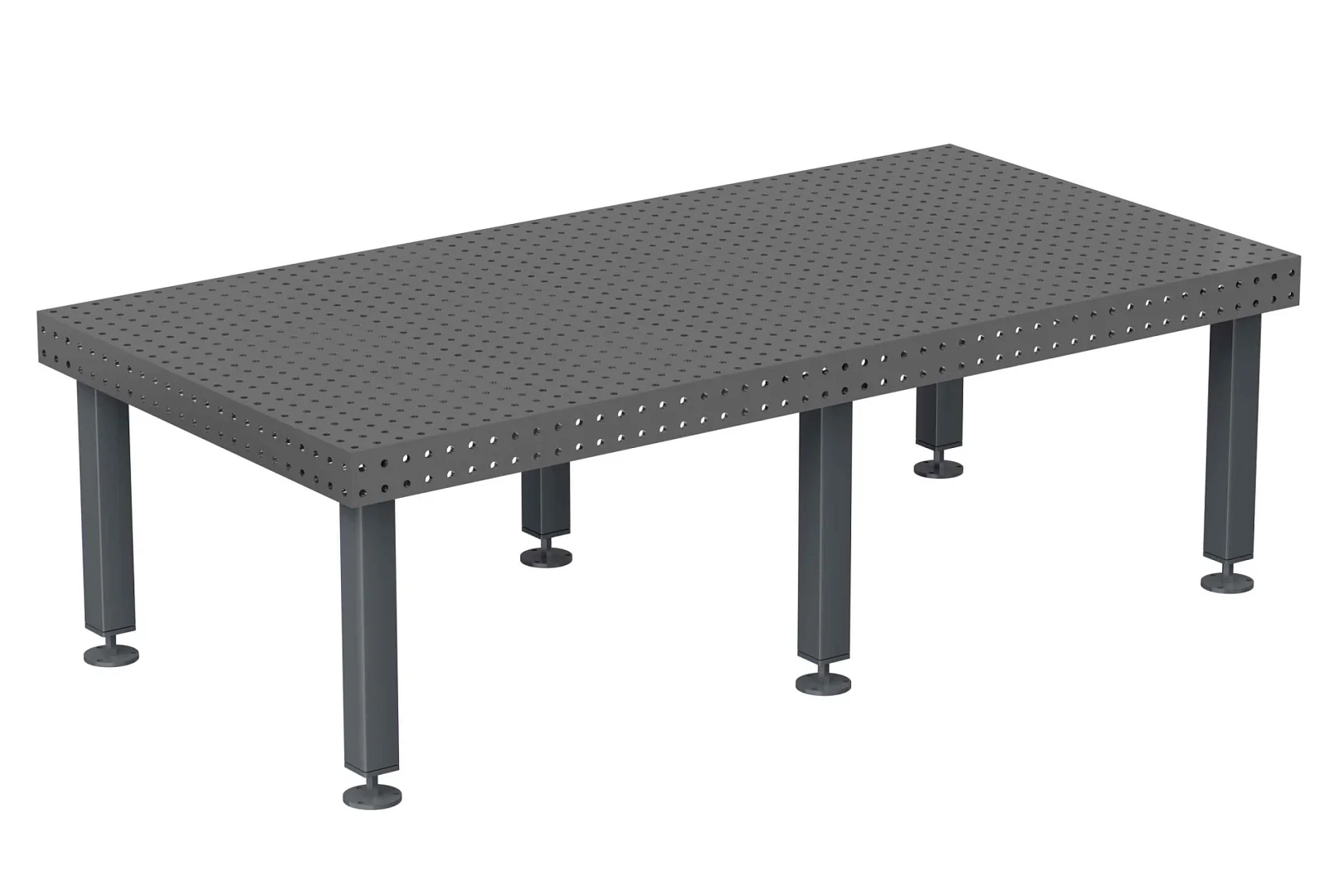 Сварочно-монтажный стол "Spark" Сварочно-монтажный стол "Spark" представляет собой надежную крупно-узловую конструкцию, идеально подходящую для профессиональных задач. Он включает в себя прочную столешницу с силовым внутренним каркасом, обеспечивающим дополнительную жесткость и устойчивость. Регулируемые по высоте опоры позволяют адаптировать стол под любые рабочие условия, обеспечивая комфорт и эффективность в процессе работы на неровных поверхностях. Столешница: Столешница для сварочного стола - изготовлена из высококачественной стали 10ХСНД, способной выдерживать температурное воздействие до +450 °C. Она оснащена дополнительными монтажными отверстиями на боковых стенках, что позволяет расширить функциональные возможности стола. Столешница толщиной 10 мм усилена ребрами жесткости, предотвращающими деформацию под воздействием высоких температур и тяжелых нагрузок. Это обеспечивает ровную рабочую поверхность для выполнения точных сварочных работ. Координатно-расположенные монтажные отверстия диаметром 16 мм и шагом 50 мм, а также координатная сетка с шагом 50 мм, делают столешницу универсальной и удобной в использовании. Точность и дополнительные опции: Отверстия под оснастку зенкованы не менее 1,5 * 45° мм. Плоскостность столешницы составляет до 0,5 мм на 1 погонный метр. По желанию заказчика возможно нанесение гравировки с горизонтальной и вертикальной оцифрованной линейкой и угловым транспортиром, что делает нашу столешницу идеальным выбором для проведения точных сварочных работ.