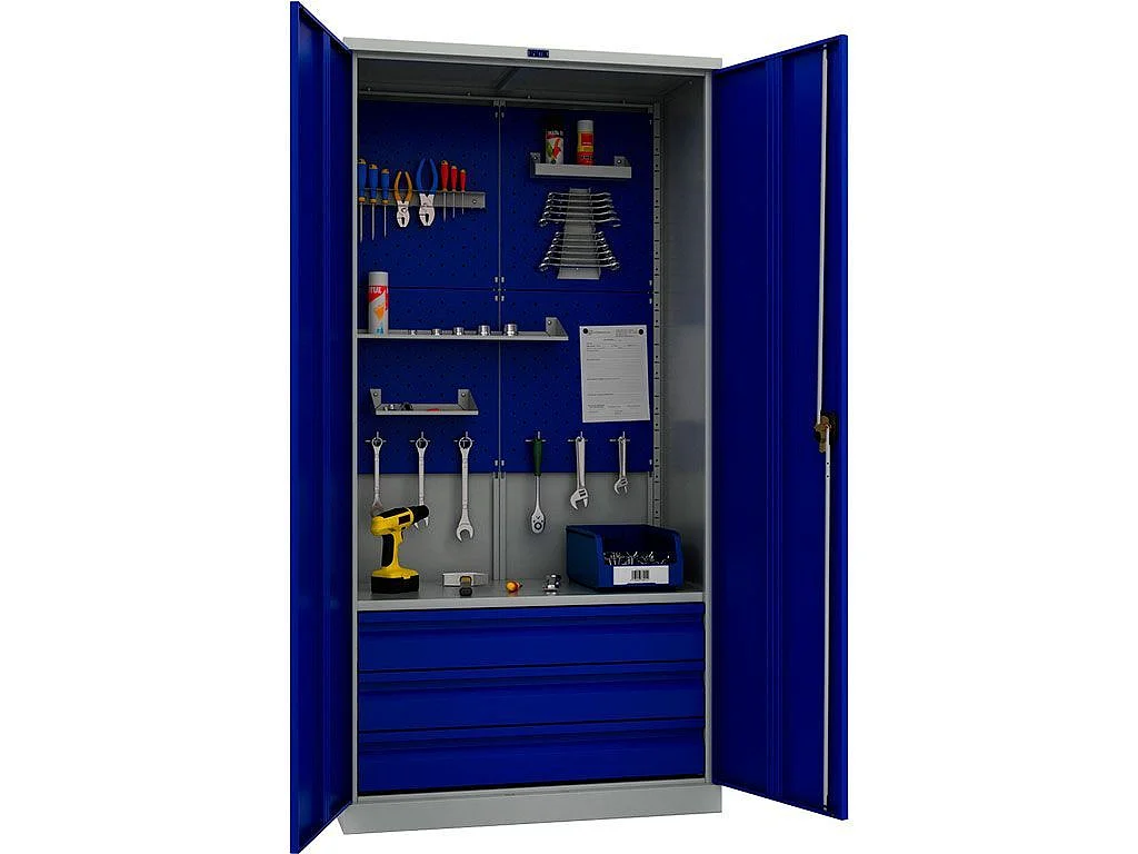 Предназначен для хранения инструментов, слесарных приспособлений и других изделий на предприятиях, мастерских, автосервисах.