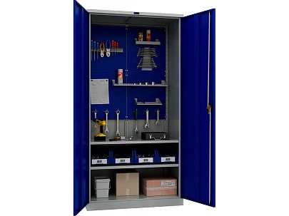 Предназначен для хранения инструментов, слесарных приспособлений и других изделий на предприятиях, мастерских, автосервисах.