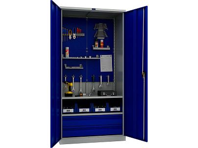 Предназначен для хранения инструментов, слесарных приспособлений и других изделий на предприятиях, мастерских, автосервисах.