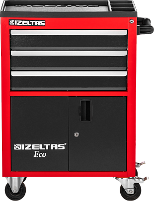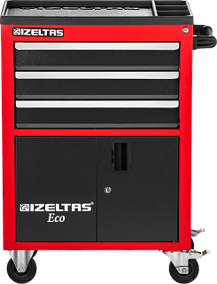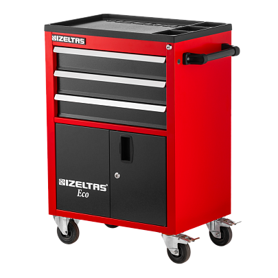 Тележка инструментальная серии ECO с набором инструментов 93 предмета, 3 выдвижных ящика, отделение с распашными дверцами, - красно-черный, IZELTAS, 8243001196, 13000005234