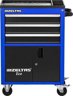Тележка инструментальная серии ECO с набором инструментов 93 предмета, 3 выдвижных ящика, отделение с распашными дверцами, - сине-черный, IZELTAS, 8243001296, 13000005242