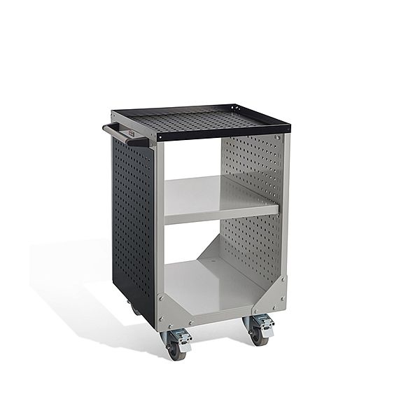 Надежная тележка для бережного хранения и перемещения инструмента и оборудования. В комплекте эргономичная боковая ручка и поворотные колеса TENTE (Германия), два колеса с тормозом, полка, лоток с резиновым ковриком. Максимальная нагрузка на полку - 200 кг. Качественная резина на колёсах не оставляет чёрных следов.