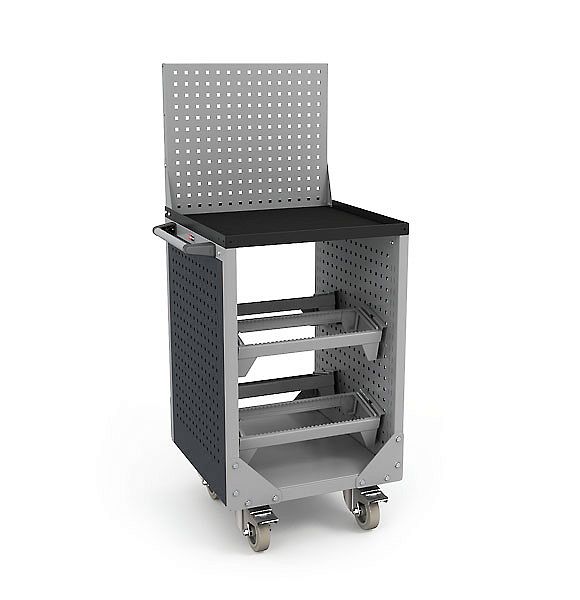 Надежная тележка для бережного хранения и перемещения инструмента и оборудования. В комплекте эргономичная боковая ручка и поворотные колеса TENTE (Германия), два колеса с тормозом, 4 салазки под держатели инструмента, лоток с резиновым ковриком и экран на лоток. Качественная резина на колёсах не оставляет чёрных следов. Максимальная нагрузка на тележку – 1000 кг.