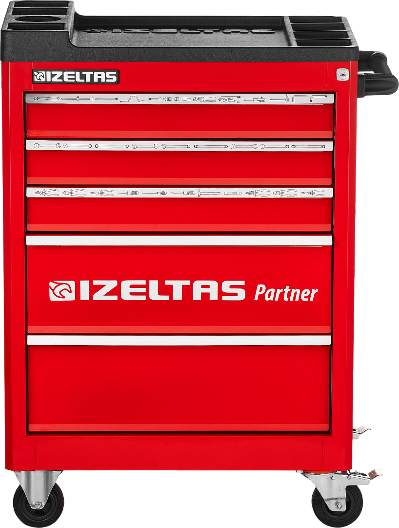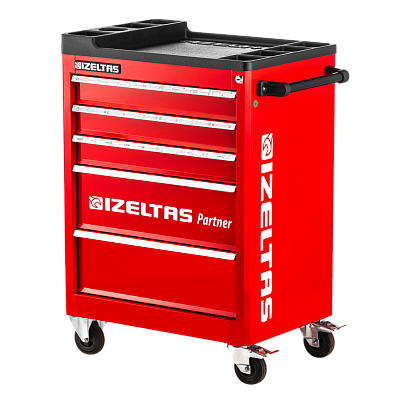 Тележка инструментальная серии PARTNER без инструментов, 5 выдвижных ящиков, цвет красно-черный, IZELTAS, 8235326005/13000002365
