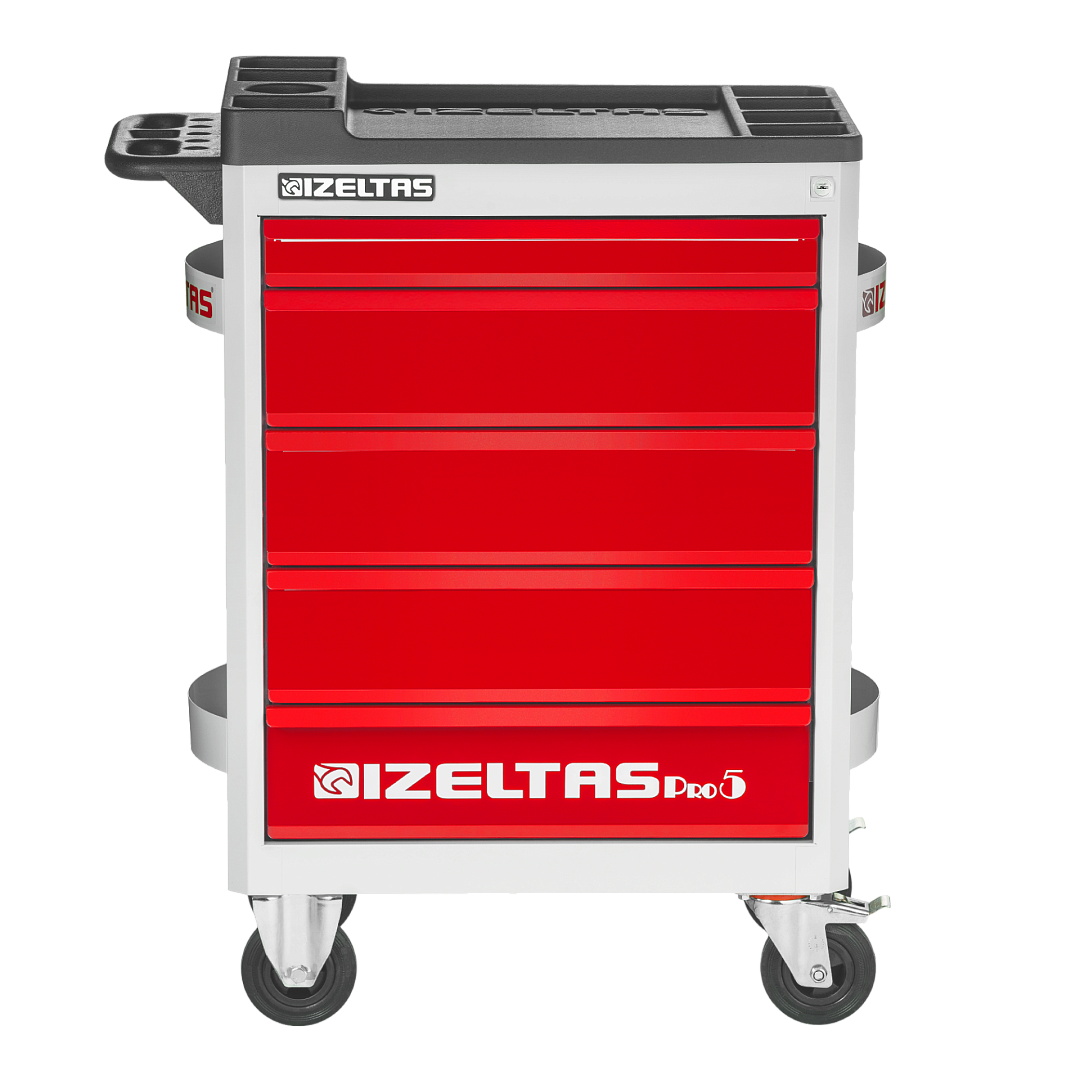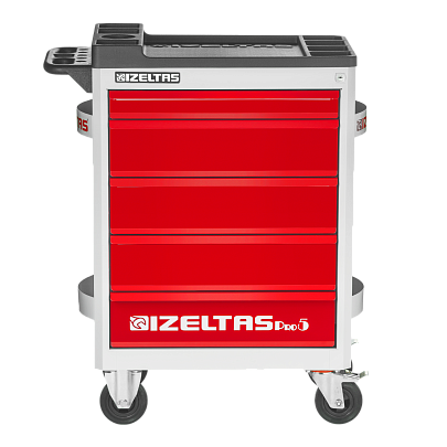 Тележка инструментальная серии PRO без инструментов, 5 выдвижных ящиков, красно-черный, IZELTAS, 8241321005, 13000002401