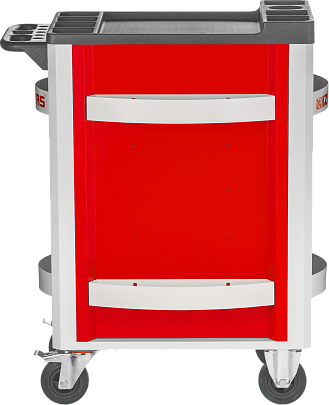 Тележка изготовлена из листовой коррозионностойкой стали с порошковым покрытием. Цвет - красный RAL 3020, серый RAL 7035