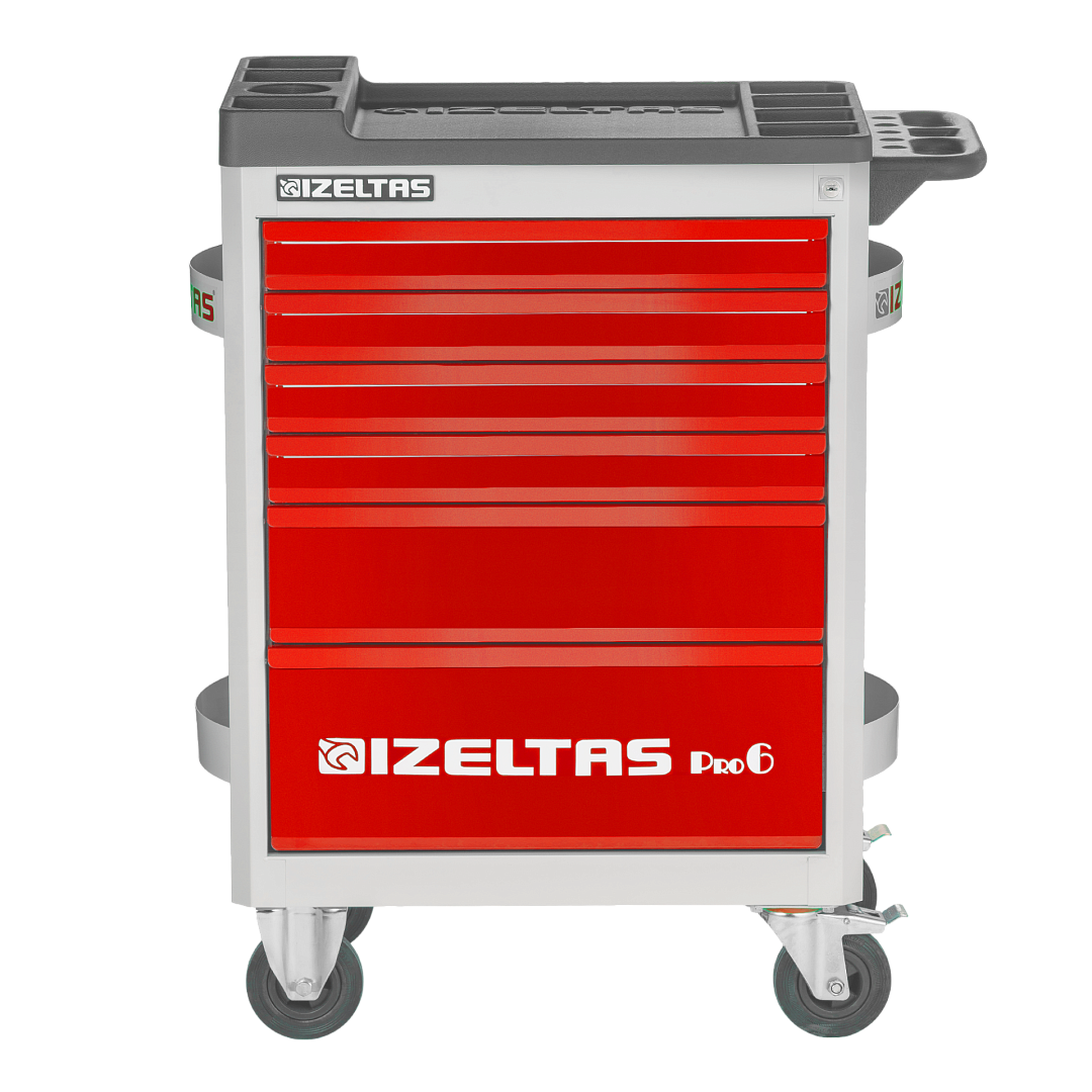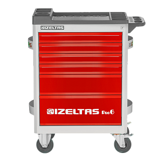 Тележка инструментальная серии PRO без инструментов, 6 выдвижных ящиков, красно-черный, IZELTAS, 8241321006, 13000002402
