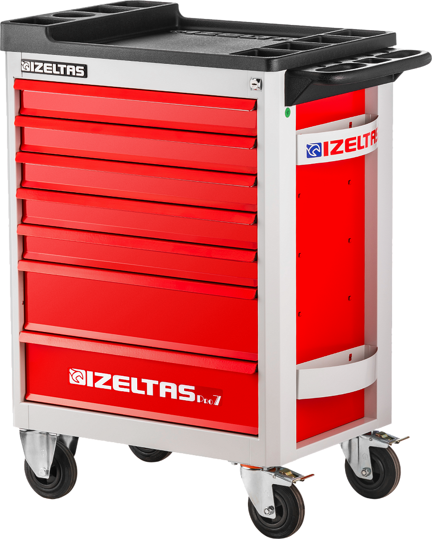Тележка инструментальная серии PRO без инструментов, 7 выдвижных ящиков, красно-черный, IZELTAS, 8241321007, 13000002403