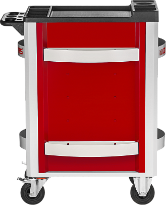 Боковые стенки и задняя панель инструментальной тележки с дополнительными (разнесенными по высоте) креплениями для установки боксов.