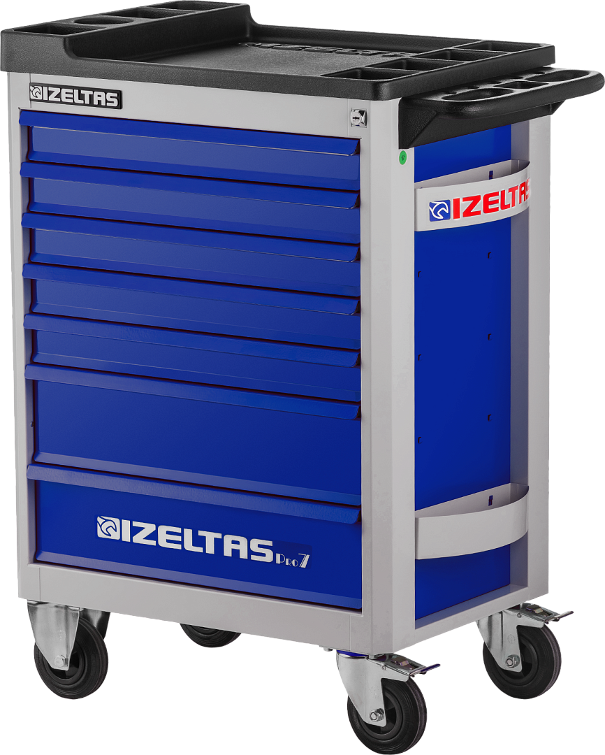 Тележка инструментальная серии PRO без инструментов, 7 выдвижных ящиков, сине-cерый, IZELTAS, 8241322007, 13000002410