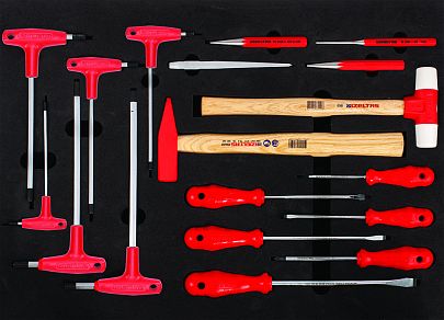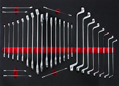 В шести верхних ящиках размещены шесть ложементов с инструментом (206 предметов)