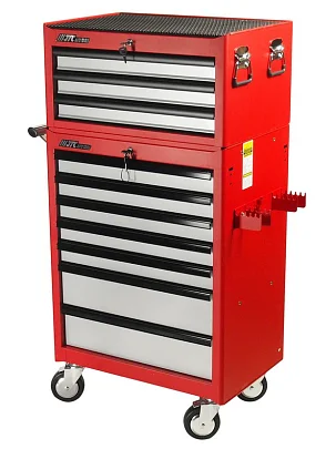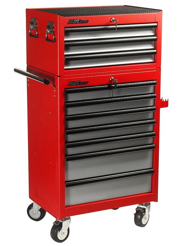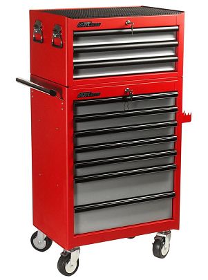 Тележка инструментальная с инстументальным ящиком и набором инструментов 578 предметов, 9 выдвижных ящиков, цвет красно-черный, JTC