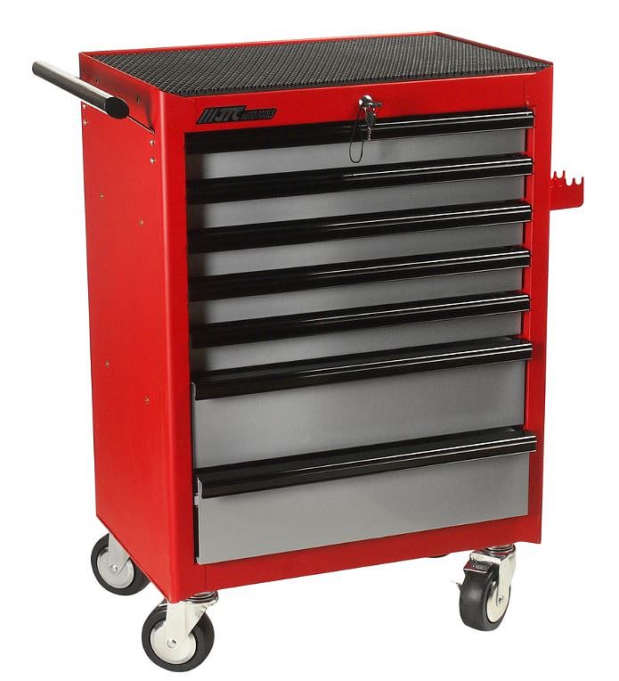 Тележка инструментальная c набором инструментов 344 предмета, 7 выдвижных ящиков, цвет красно-черный, JTC