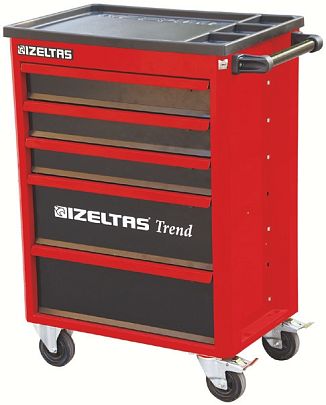 Тележка инструментальная серии TREND без инструментов, 5 выдвижных ящиков, цвет красно-черный, IZELTAS, 8244321005/13000002460