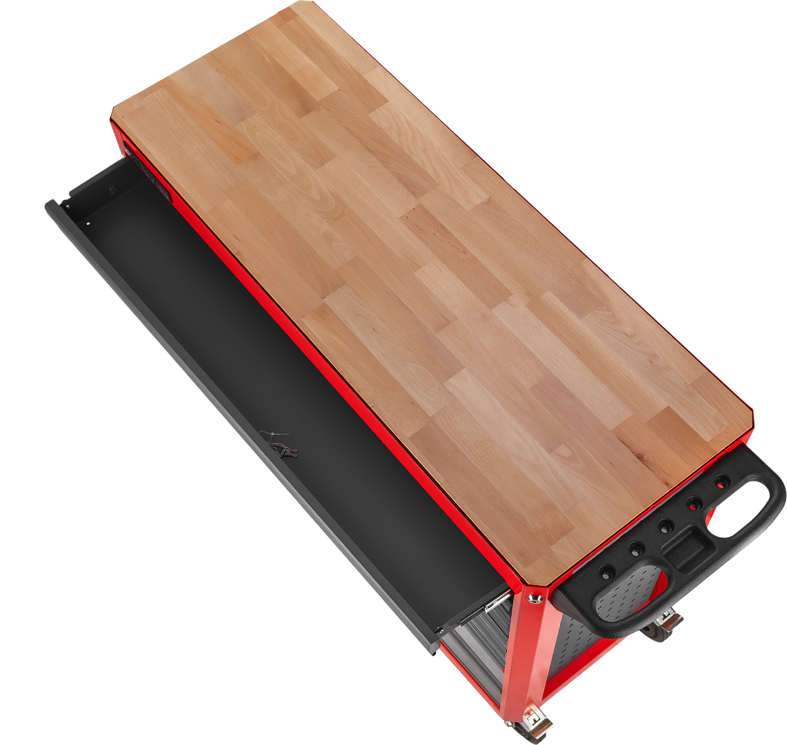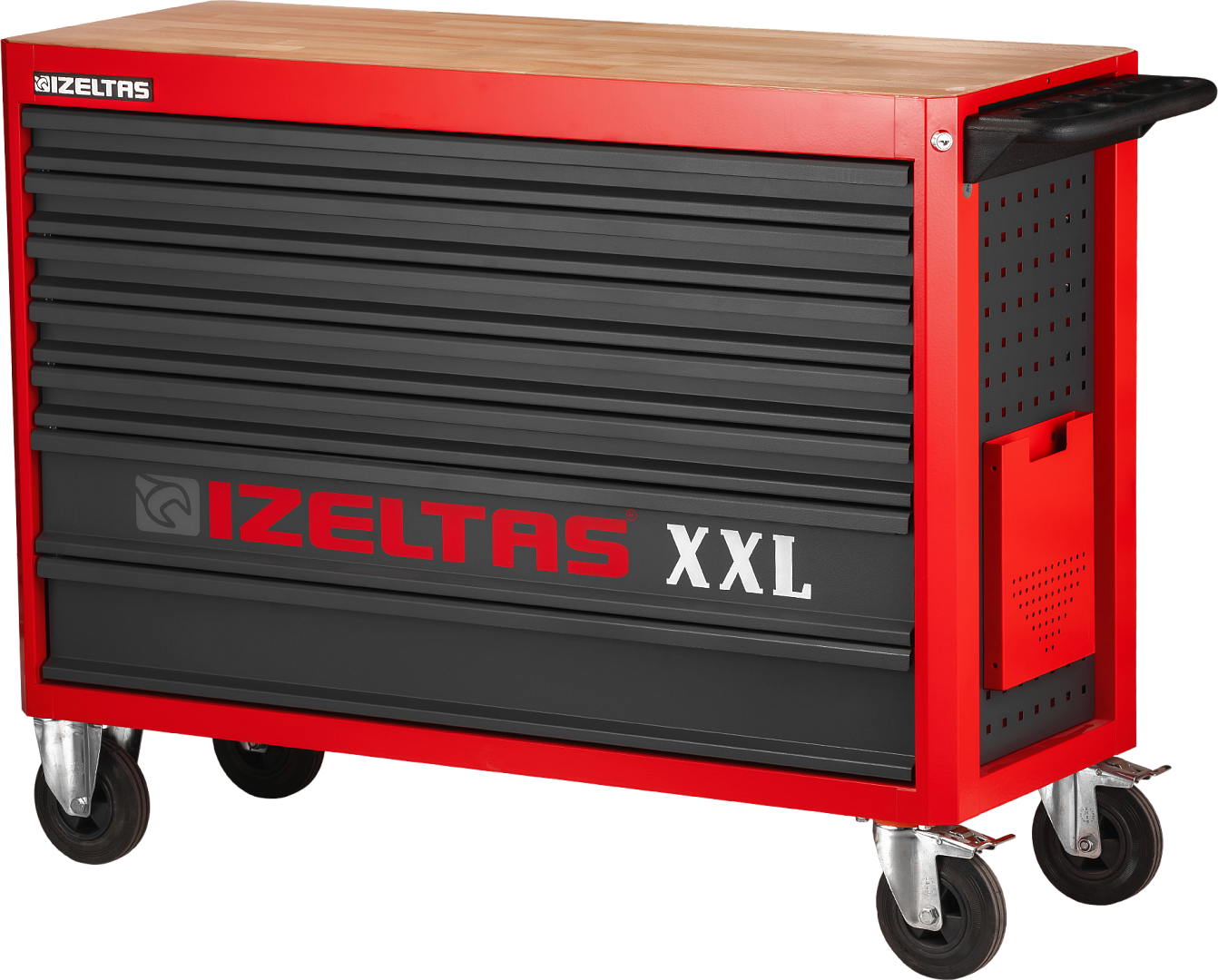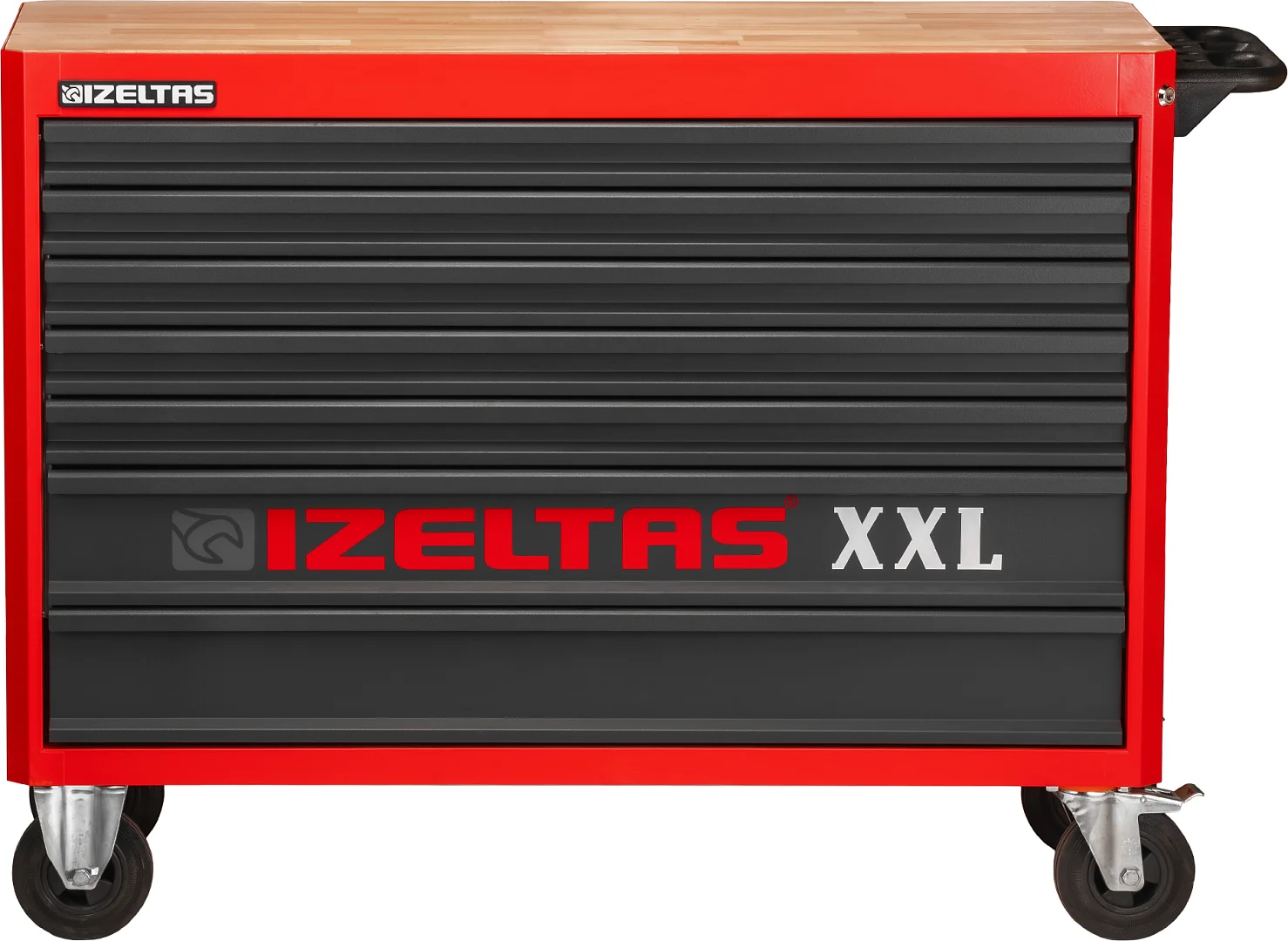 Тележка инструментальная (верстак) серии XXL без инструментов, деревянная столешница, 7 выдвижных ящиков, красно-черный, IZELTAS, 8246321007, 13000002478