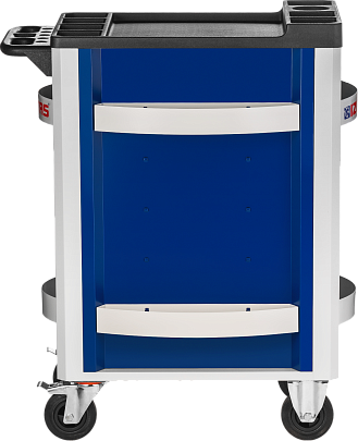 Боковые стенки и задняя панель инструментальной тележки с дополнительными (разнесенными по высоте) креплениями для установки боксов.