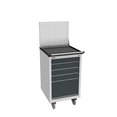 Тумба с ящиками на колёсах для перемещения различных грузов/инструментов. Максимальная нагрузка на колёса — 1000 кг. Максимальная нагрузка на ящик — 60 кг.
