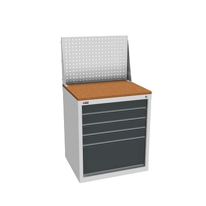 Корпус тумбы и ящиков сварной, что обеспечивает высокую жесткость.