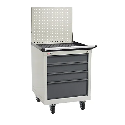 Тумба с ящиками на колёсах для перемещения различных грузов/инструментов. Максимальная нагрузка на колёса — 400 кг. Максимальная нагрузка на ящик — 30 кг.