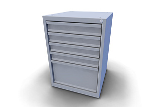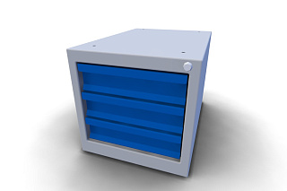 Тумба окрашена эпоксидной краской: корпус тумбы серого цвета RAL7038, ящики синего цвета RAL5010
