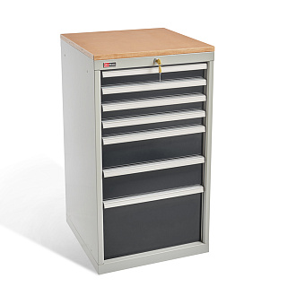 Корпус тумбы и ящиков сварной, что обеспечивает высокую жесткость. Направляющие ящиков телескопические полного выдвижения.