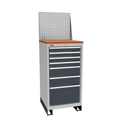 Тумба с ящиками для хранения инструмента, используется как рабочее место, сверху установлена столешница, экран и комплект упоров. Тумба стоит на подставке. Удобна для перемещения рохлей. Максимальная нагрузка на корпус тумбы — 3000 кг. Максимальная нагрузка на ящик — 100 кг.