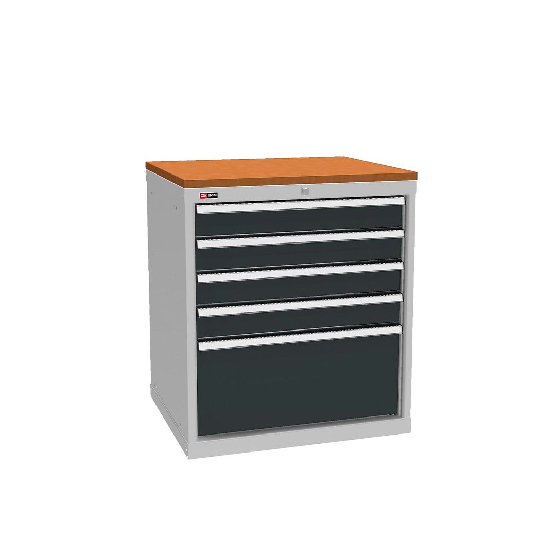 Тумба для хранения оснастки, инструмента и материалов на производственных предприятиях, может использоваться как рабочее место. Сверху установлена столешница из влагостойкой фанеры и экран с комплектом упоров.