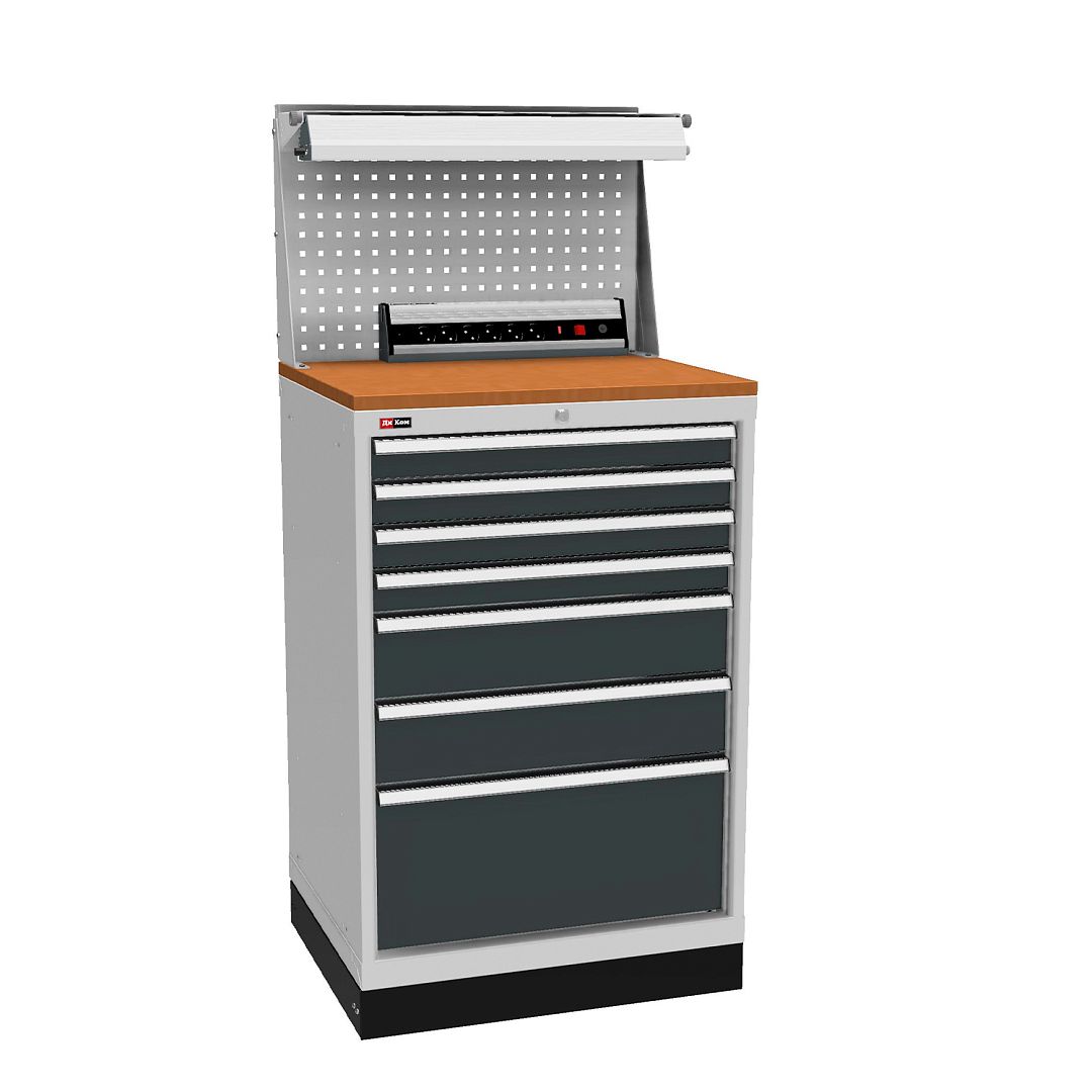 Корпус тумбы и ящиков сварной, что обеспечивает высокую прочность и долгую службу.