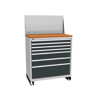 Корпус тумбы и ящиков сварной, что обеспечивает высокую жесткость и надёжность в эксплуатации.
