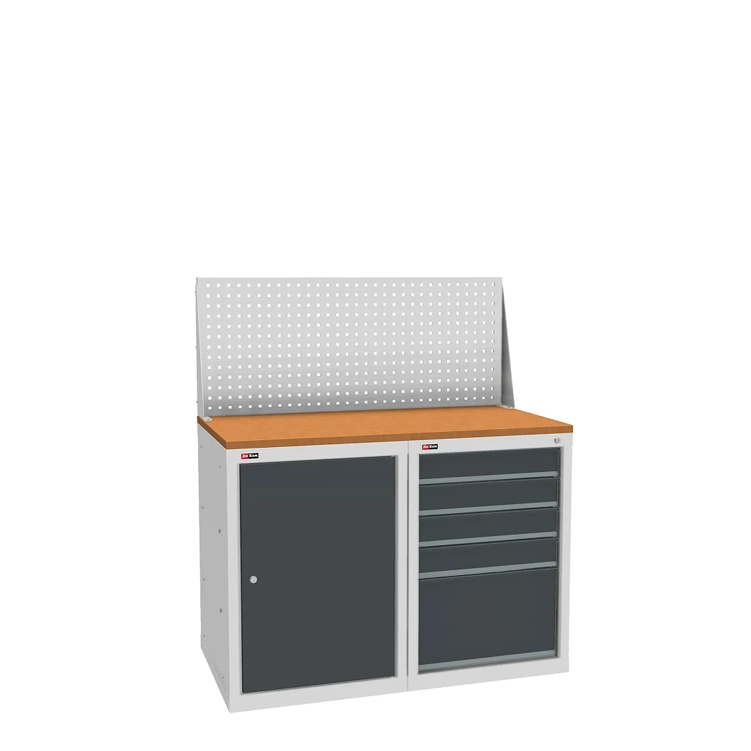 Корпуса тумб сварные, что обеспечивает высокую жесткость. Сверху установлена общая столешница и экран.