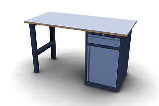 Верстак серии PRIME состоит из столешницы, опоры и тумбы с одним ящиком и распашной дверцей