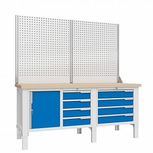 Регулировка рабочего места по высоте осуществляется в диапазоне от 700 до 950мм с шагом 25мм. Предусмотрена возможность тонкой регулировки усиленным резьбовым подпятником. Нагрузка на ящики верстака - до 40 кг, на полки - до 60кг. Общая распределенная нагрузка на рабочую поверхность 1500кг. Имеет возможность стыковки в единую рабочую поверхность с верстаками серии Constructor