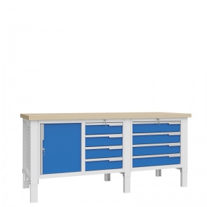 Регулировка рабочего места по высоте осуществляется в диапазоне от 700 до 950мм с шагом 25мм. Предусмотрена возможность тонкой регулировки усиленным резьбовым подпятником. Нагрузка на ящики верстака - до 40 кг, на полки - до 60кг. Общая распределенная нагрузка на рабочую поверхность 1500кг. Имеет возможность стыковки в единую рабочую поверхность с верстаками серии Constructor
