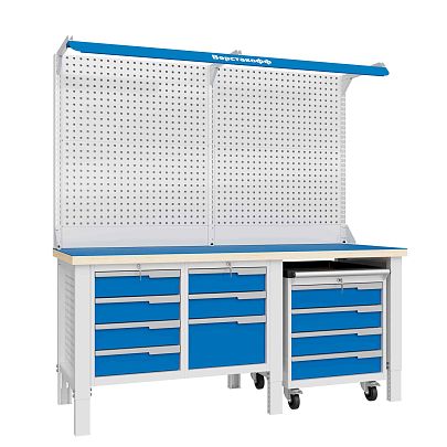 Рама верстака выполнена из холоднокатаной стали толщиной 2мм, модули - из стали 0,8мм.