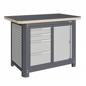 Модуль верстака выполнен сварными. Ящики в модулях устанавливаются на шариковых телескопических направляющих полного выдвижения.