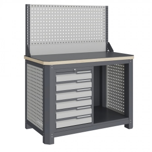 Модуль верстака выполнен сварными. Ящики в модулях устанавливаются на шариковых телескопических направляющих полного выдвижения.