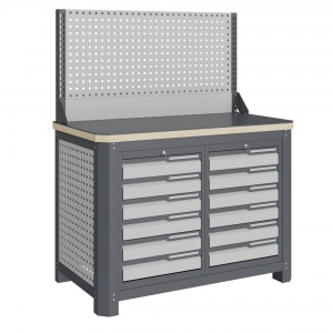 Модуль верстака выполнен сварными. Ящики в модулях устанавливаются на шариковых телескопических направляющих полного выдвижения.