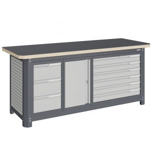 Модуль верстака выполнен сварными. Ящики в модулях устанавливаются на шариковых телескопических направляющих полного выдвижения.