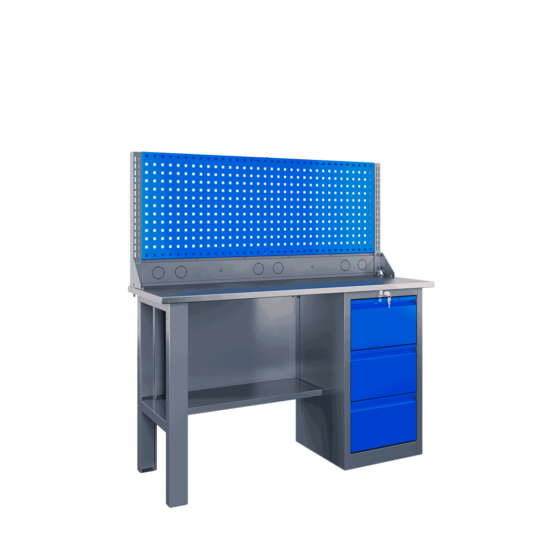 Самые компактные верстаки с глубиной столешницы 500 мм. Благодаря небольшой глубине, такие верстаки легко размещаются в ограниченных пространствах, например, в гаражах, мастерских и тд. Несмотря на компактные размеры, верстаки могут быть оснащены полками, ящиками и держателями для инструментов, что помогает поддерживать порядок и быстро находить нужные предметы.