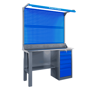 Самые компактные верстаки с глубиной столешницы 500 мм. Благодаря небольшой глубине, такие верстаки легко размещаются в ограниченных пространствах, например, в гаражах, мастерских и тд. Несмотря на компактные размеры, верстаки могут быть оснащены полками, ящиками и держателями для инструментов, что помогает поддерживать порядок и быстро находить нужные предметы.