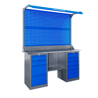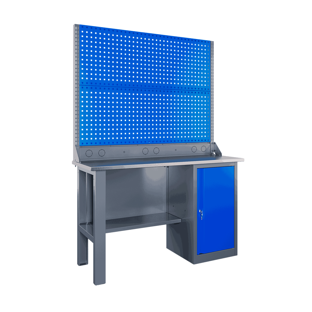 Самые компактные верстаки с глубиной столешницы 500 мм. Благодаря небольшой глубине, такие верстаки легко размещаются в ограниченных пространствах, например, в гаражах, мастерских и тд. Несмотря на компактные размеры, верстаки могут быть оснащены полками, ящиками и держателями для инструментов, что помогает поддерживать порядок и быстро находить нужные предметы.